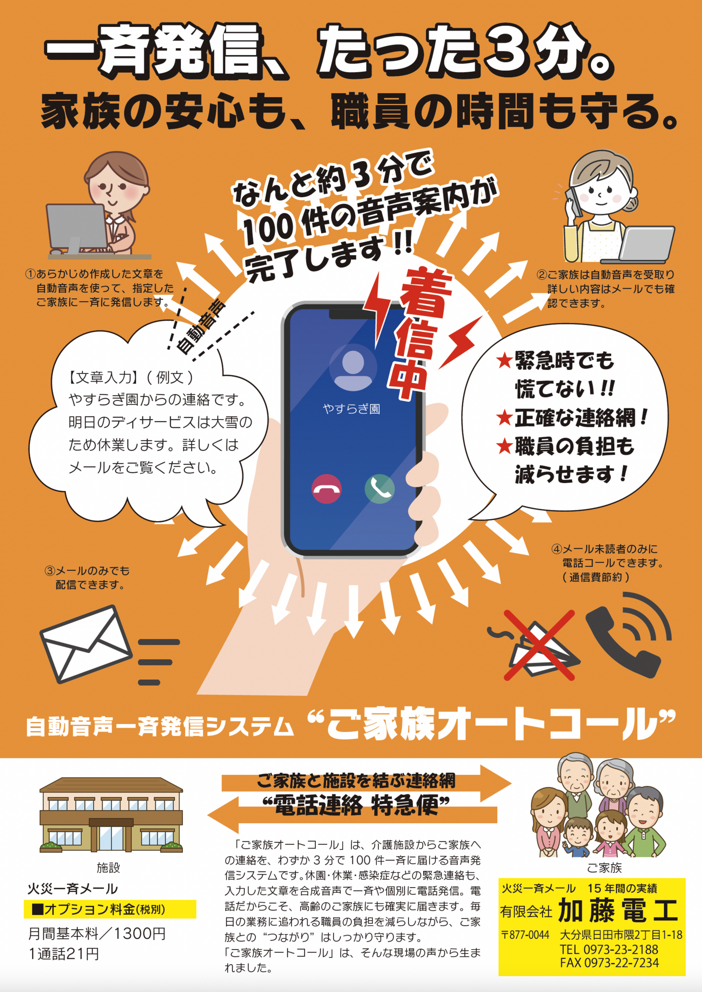 ご家族と施設を結ぶ連絡網『電話連絡特急便』