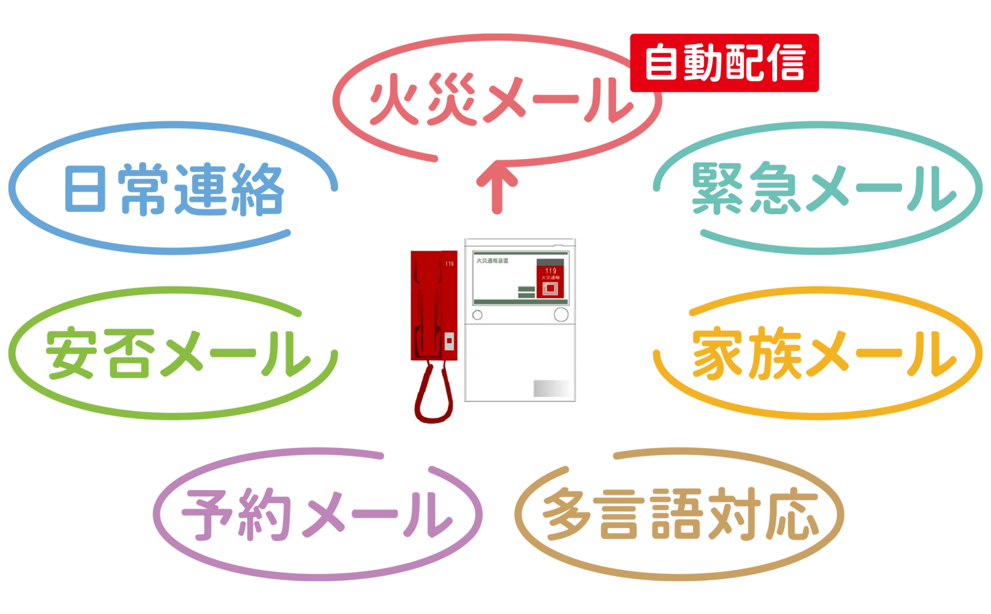 火災一斉メールは、7つのサービスで安心をお届けします。